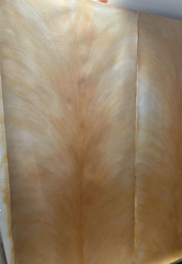 Printed and hand-finished on gilded paper, Rays of Plumeria explores the tension between order and fluidity. Subtle shifts of light and tone create a shimmering canopy of movement, as compelling on ceilings as it is striking on walls.