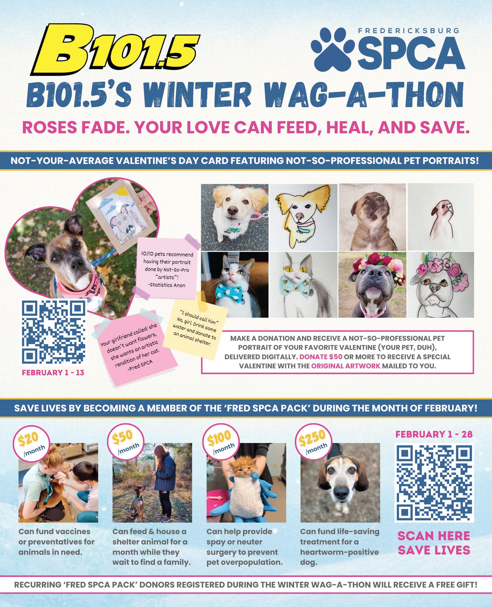 When the holiday season ends, charitable giving often slows, but the work of caring for animals continues yearround. For the Fredericksburg SPCA, the months following the holidays remain a critical time for community support. Donations of food, supplies, and funds help sustain daily operations and essential programs that serve both animals in the shelter and pet-owning families throughout the region.