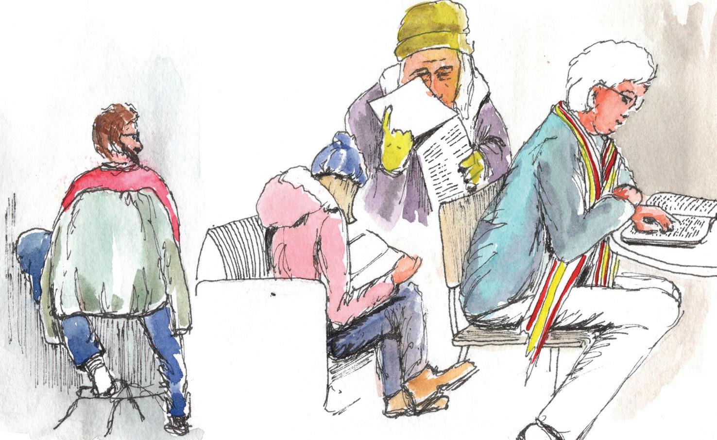 Some folks noticed I was drawing them, so they sat as still as they could. No one seemed to mind.