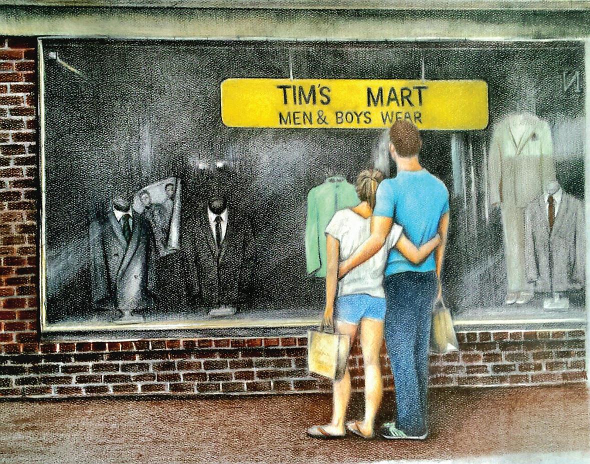 Reynolds continues, “Cliff is a selfproclaimed romantic visual narrator, enhancing hues while masterfully interpreting our bustling town with positive energy as we walk our dogs, load our groceries, wait in line, choose our tomatoes, dine with friends, shovel snow, or cross the street. He creates with the spirit of Norman Rockwell’s eternal optimism.