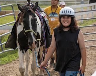 learn not only how to ride, but also the responsibility that comes along with caring for horses. Campers are assigned a horse for one week and will switch mid-session. They spend half of their day at the barn, focusing on their riding technique and learning about grooming, tacking, veterinary care, and training techniques. Another portion of each day is spent hiking, completing high and low ropes elements, boating, and making arts and crafts. Campers will enjoy water activities several times each week, an overnight camping experience, and an all-camp day focused on a theme.