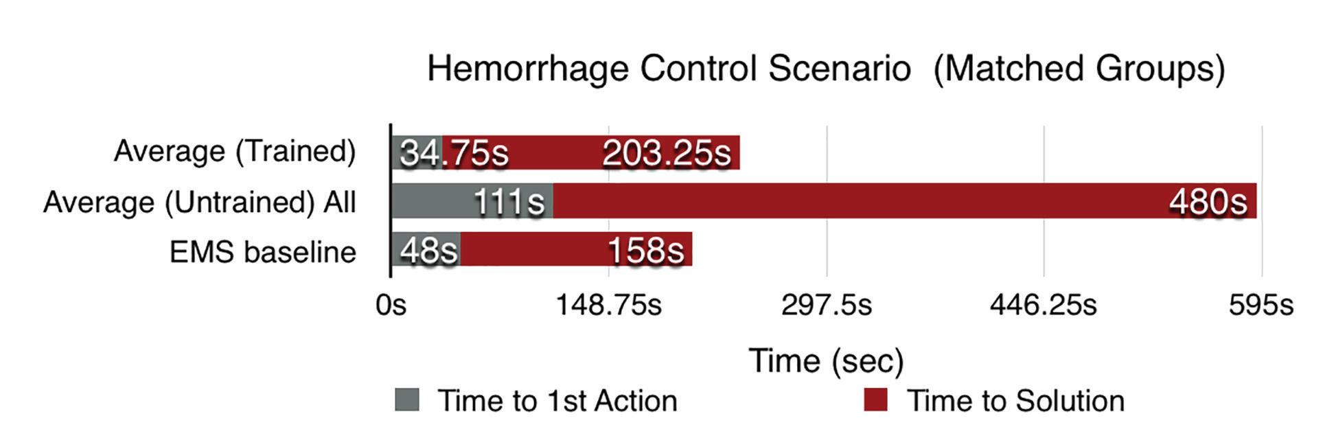 Through a series of exercises held during First Care Provider training sessions we have found that average people with as little as a half day of training are almost as effective as trained responders in recognizing critical issues like bleeding, and intervening (fig3)