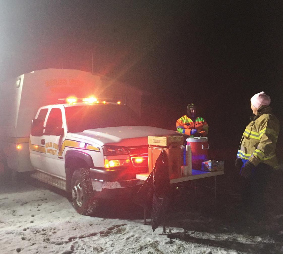 A fire on January 1, 2018 was a test of their ‘’Winter Ops” plan—the tempature was right at zero! The fire was a well involved house, requiring a couple of hours to extinguish and overhaul. A CERT group in Outagamie County, Wisconsin was contacted for suggestions, since they have a lot of experience with cold weather. Their idea was to use a 2/3 gallon dispenser-type coffee maker (without the coffee) to heat up water and add bouillon cubes for instant broth. The BFPD team already had insulated dispenser containers, so they heated water on the firehouse stove, put it in containers, and went to the scene. With the hot water, they were able to provide a choice of drinks, soups, broth, etc.