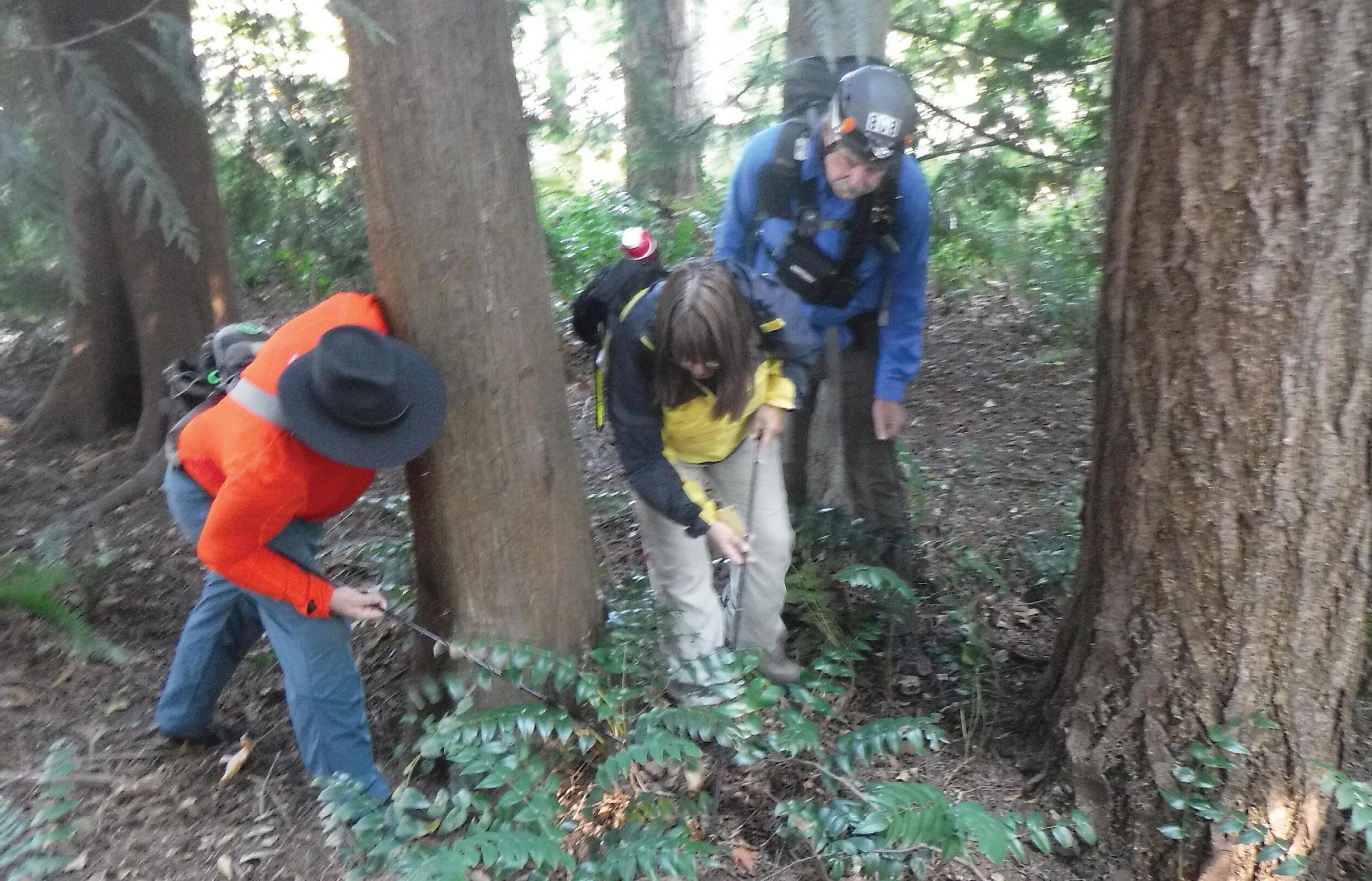 one’s missions to missing person searches. Often, however, one type of mission leads into the other. The ability to not only follow the path of the subject, but also interpret the sign maker’s characteristics, proves especially valuable in crime scene investigations, an area in which Snohomish County Trackers excel. Snohomish County Trackers have been called in to numerous murders, suicides, abductions, assaults, mass shootings, arsons, and all manner of other crimes over the years.