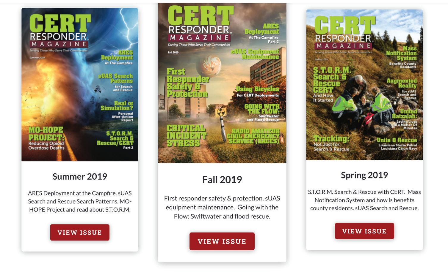 CERT Responder Magazine is dedicated to providing CERT and first responders with information and tools to assist communities in times of crisis, as well as offering a platform for responders to share their stories.