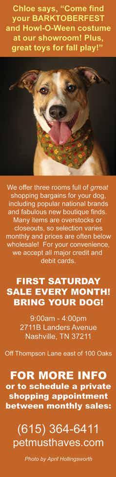 of 50,000 pet lovers! Deadline for next issue is 10/21/16. Email info@nashvillepaw.com or call (615) 474-5710.