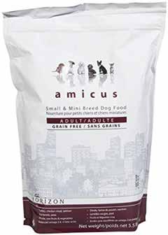 Developed by Horizon Pet Nutrition, Amicus is a kibble designed specifically for small and mini-breed dogs. While still maintaining a grain-free, high-protein, lowcarb nutrient profile, Amicus utilizes red lentils to create a tasty, nutritious food that is low on the glycemic index and high in antioxidants. There are three different diets, depending on life stage. It’s available at THR!VE Healthy Pet Market, located inside The Farm at Natchez Trace in Franklin. horizonpetnutrition.com