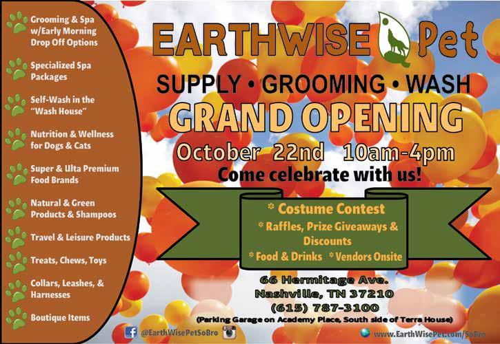 The store celebrates their grand opening event on Saturday, October 22 from 10am-4pm, complete with food, drinks, prizes, special discounts, vendors and all sorts of fun for your furry friends—including a Halloween costume contest. (Sneak into the store before then to find the perfect costume!) For more information, follow them on Facebook, check out their Instagram @earthwisepetsobro or visit their website at earthwisepet.com/nashville-sobro
