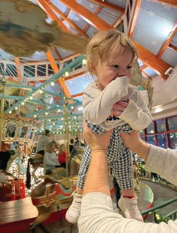 Casen (9 months) of Raleigh takes his first ride on the merry-go-round at Pullen Park.