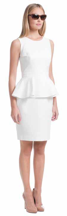 For a more dramatic high-fashion look, wear Shoshanna’s white peplum top with matching pencil skirt.