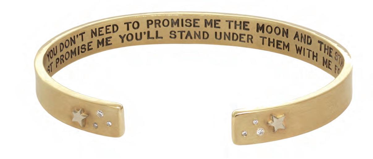 A must-have is Ylang Ylang’s enchanting yellow gold and diamond cuff created by acclaimed jewelry designer Heather Moore. What we like most about this unique designer bracelet are the sparkling diamond