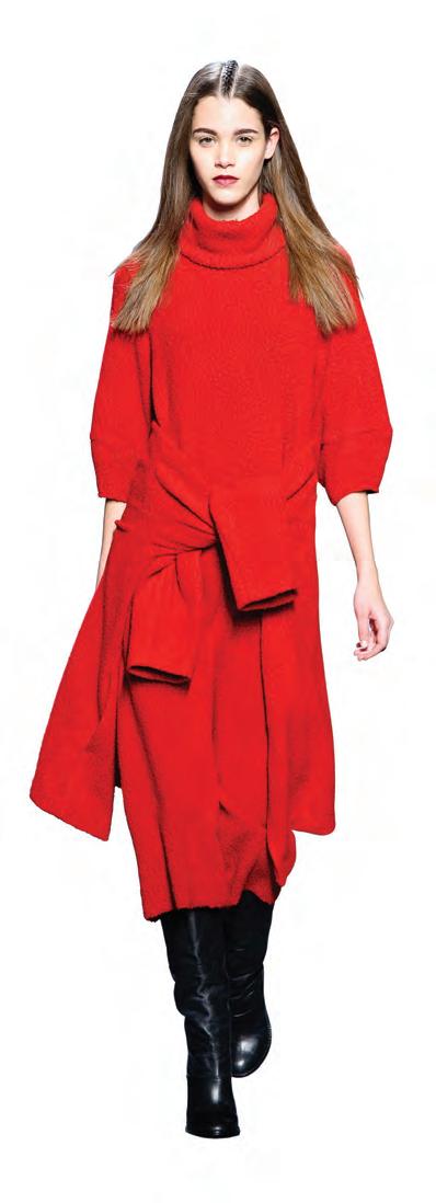 glamorous looks. Sophisticated animal print dresses are trending now such as Shoshanna’s leopard print silk dress. Tibi’s midi dress is designed in vivid red, one of fall’s most sought-after colors. Tibi’s white felted wool coat is a mustwear for fall.