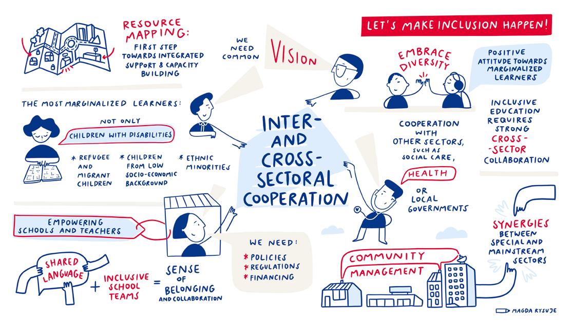 Inclusive education involves cooperation between schools, children, parents and specialist teams, and in a broader context – cross-sectoral and international cooperation.