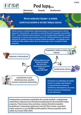 W drugiej połowie 2025 roku opublikujemy dwa raporty podsumowujące międzynarodowe projekty typu LTA (ang. long-term activities), koordynowane przez FRSE: „Ekosystem rozwoju kompetencji cyfrowych w programie Erasmus+” oraz „Wpływ staży i praktyk zagranicznych uczni w szk ł zawodowych na systemy edukacji w Europie rodkowo-Wschodniej”. Już teraz można zapozna się z wybranymi wnioskami z przeprowadzonych bada !
