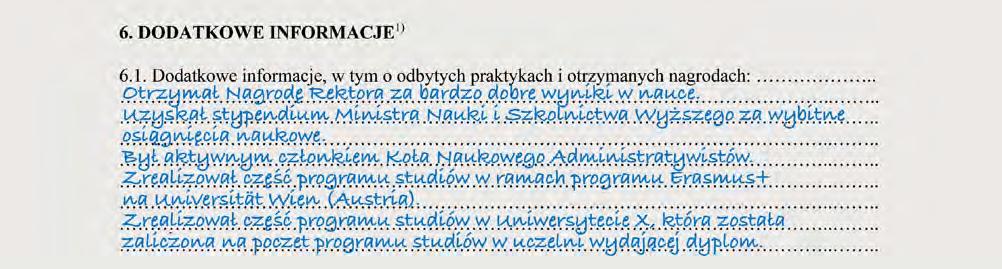 6.1. Dodatkowe informacje, w tym o odbytych praktykach i otrzymanych nagrodach: