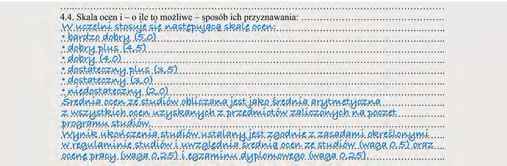 4.4. Skala ocen i – o ile to możliwe – sposób ich przyznawania: 4.4. Grading scale and, where applicable, grade distribution: