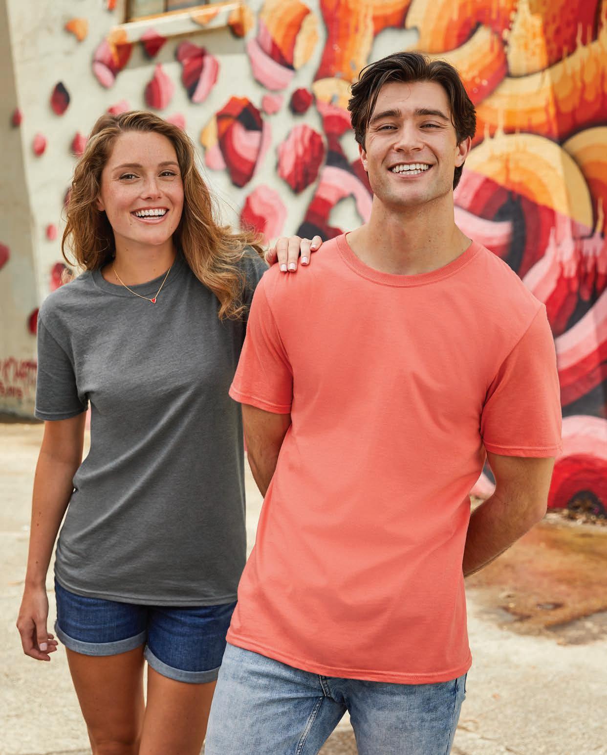 Now choose from up to 83 COLORS, with four more additions in our ever-popular HD Cotton™ Tees and our ring-spun ICONIC Tees.