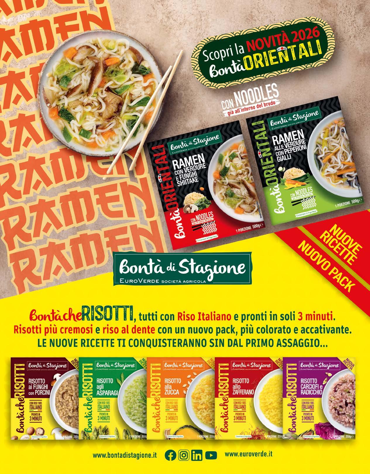 Bontà di Stagione, marchio di Euroverde Soc. Agricola, arricchisce la propria proposta nel banco frigo con una novità unica ispirata alla cucina asiatica e pensata per ridefinire l’esperienza di consumo dei Ramen. Nasce Bontà Orientali, la nuova linea di Ramen pronti che interpreta i sapori d’Oriente in chiave pratica A differenza dei prodotti presenti sul mercato, i Ramen firmati Bontà Orientali sono già pronti: zuppe complete, con noodles già all’interno del brodo, che necessitano solo di essere scaldate per pochi minuti, in microonde o in pentola, per essere gustate.