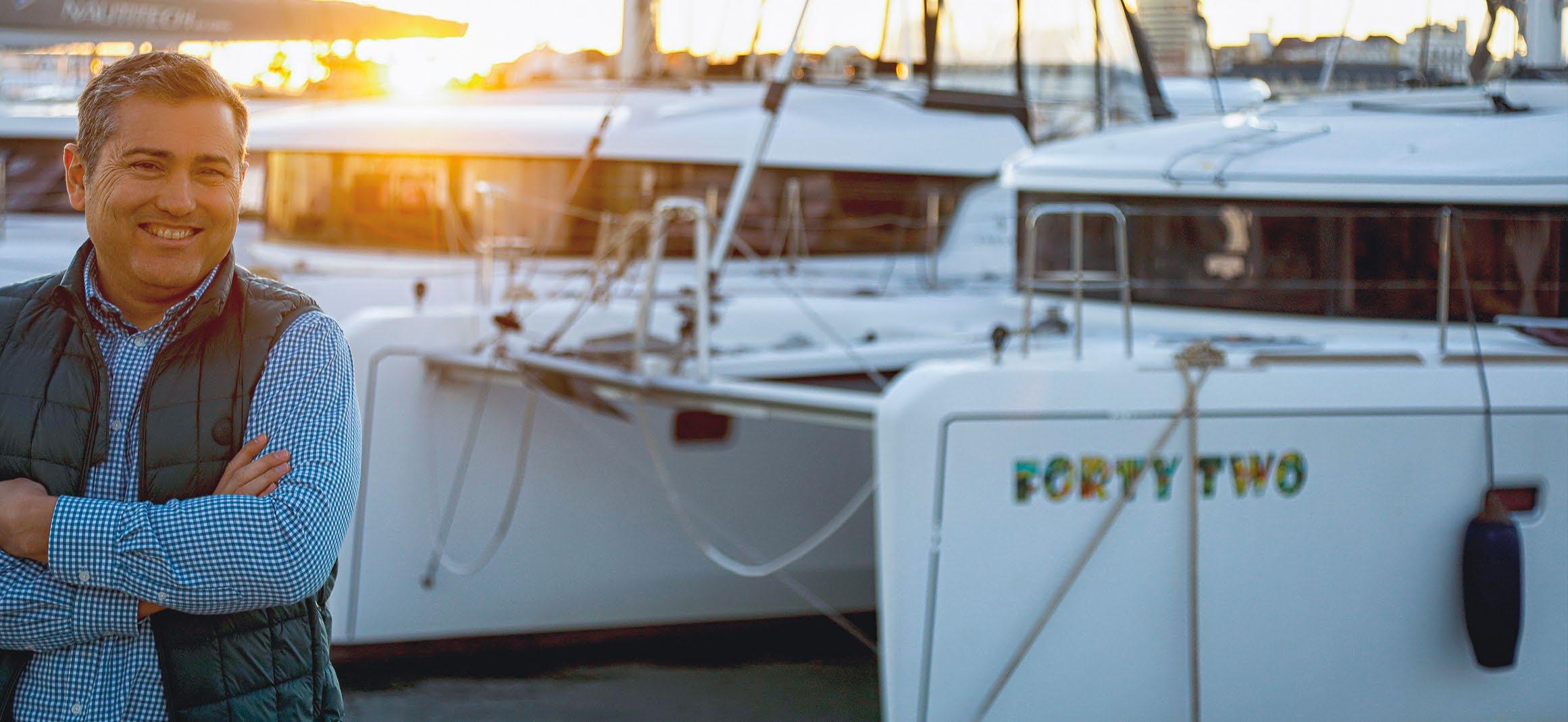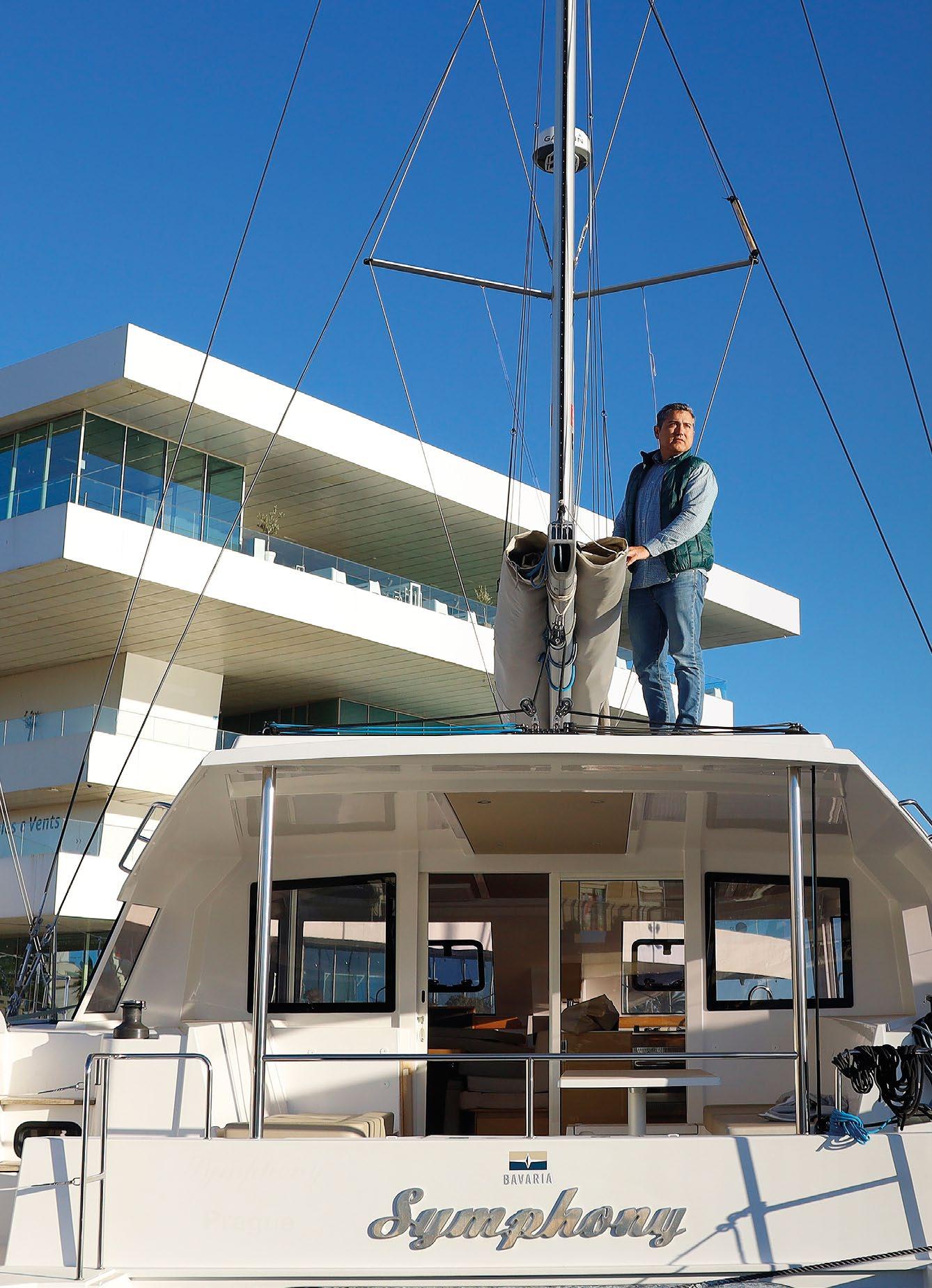 We are at the iconic Veles i Vents de la Marina building in Valencia. Bavaria, the sailing catamaran belonging to the professional entrepreneur Carlos Ledó (Valencia, 1974) is moored in front of us. To date, he has created 17 companies and he assures me that the most ground-breaking one is still on the cards, which he plans to create in Valencia to give back to Valencian society part of what it has given him.