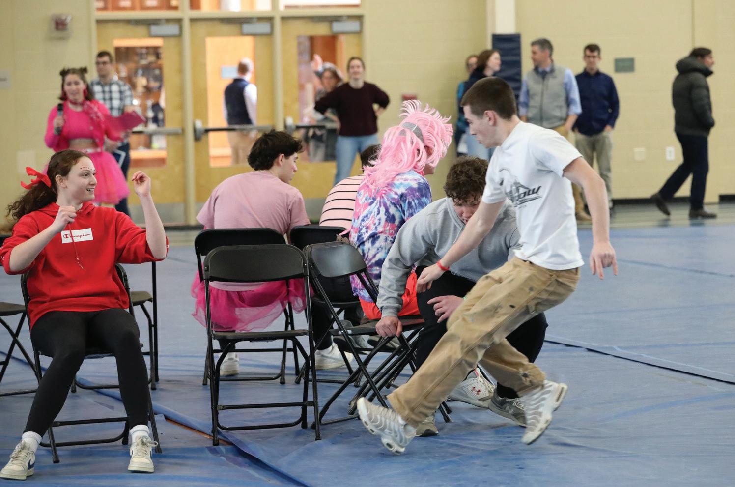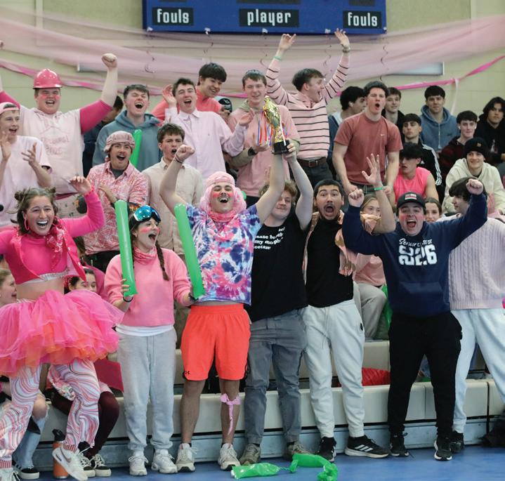 The gymnasium came alive on Friday during the pep rally! Students across all grades held green boomwackers in support of the PALs presentation in support of mental health awareness. Mr. Kenney also gave a presentation commending the Boys Alpine and Nordic Ski Teams for their Maine state championship victories. Ms. Murphy and MC Sally Baptista ‘26 announced victors for the spirit week dress up competitions, for the underclassmen Brittney Bossidy ’29 and for the upperclassmen Annabelle Harnden ’26. The senior class claimed the overall win, boasting an impressive plastic trophy. From pool-noodle jousting to tug-of-war, grades united for an hour of competitive fun!