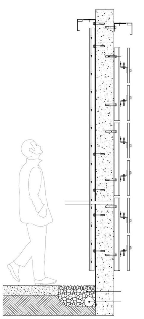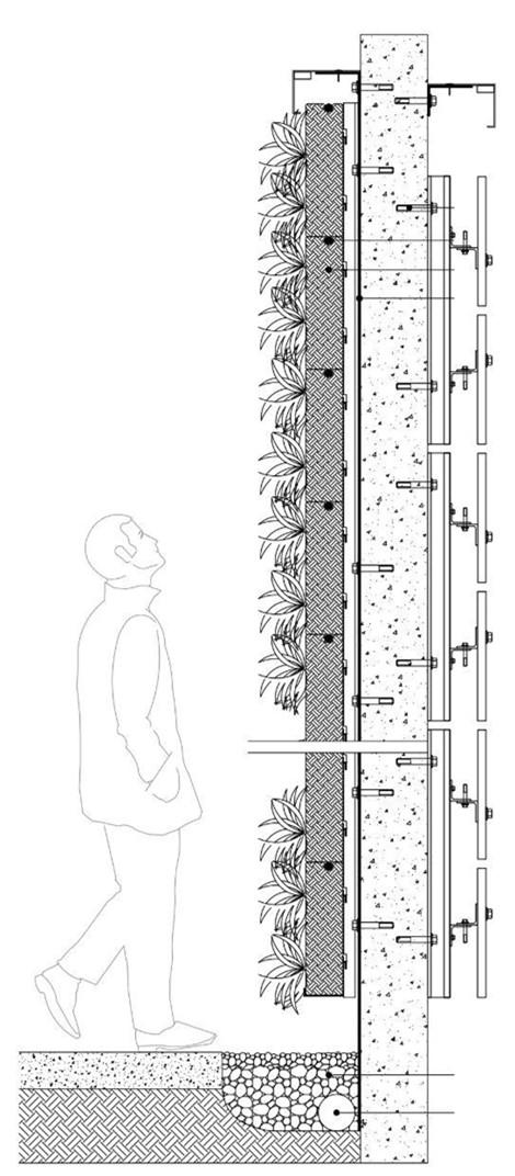 DETAILED SECTION OF THE BIOPHILIA-ROUGH CONCRETE TO THE WALL