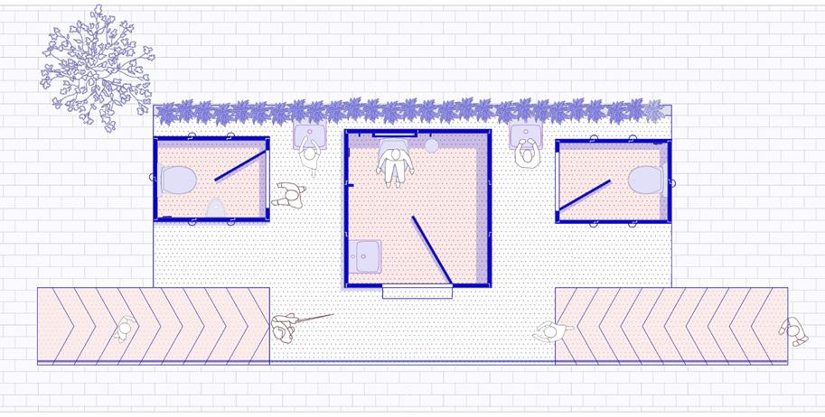 Each module: Male, Female, and Specially-Abled, is designed as a lightweight, portable system using LAP joints for rapid assembly. The units can multiply into larger clusters or be disassembled to respond to spatial constraints. This adaptability ensures public toilets remain scalable, inclusive, and resilient within diverse urban conditions.