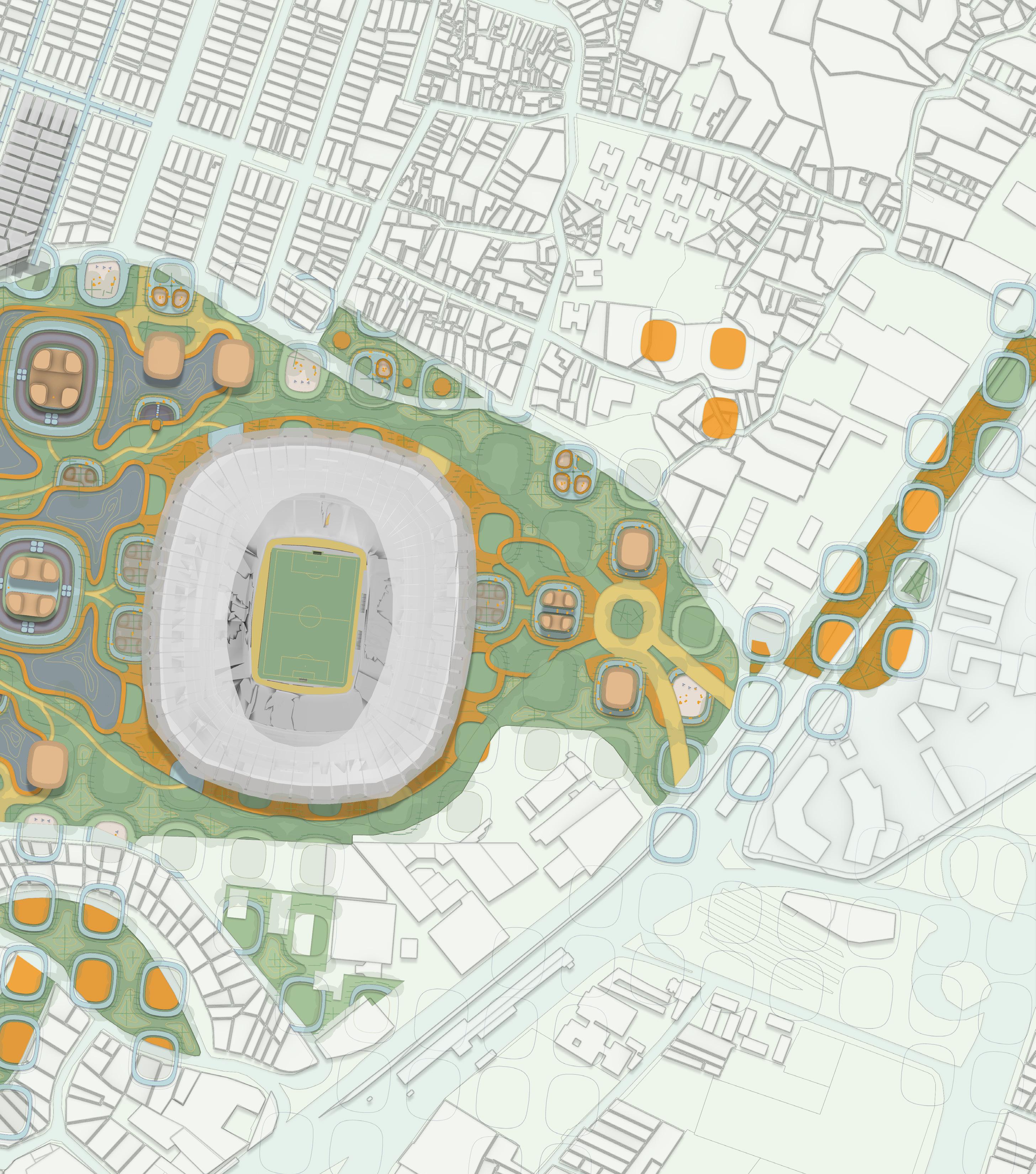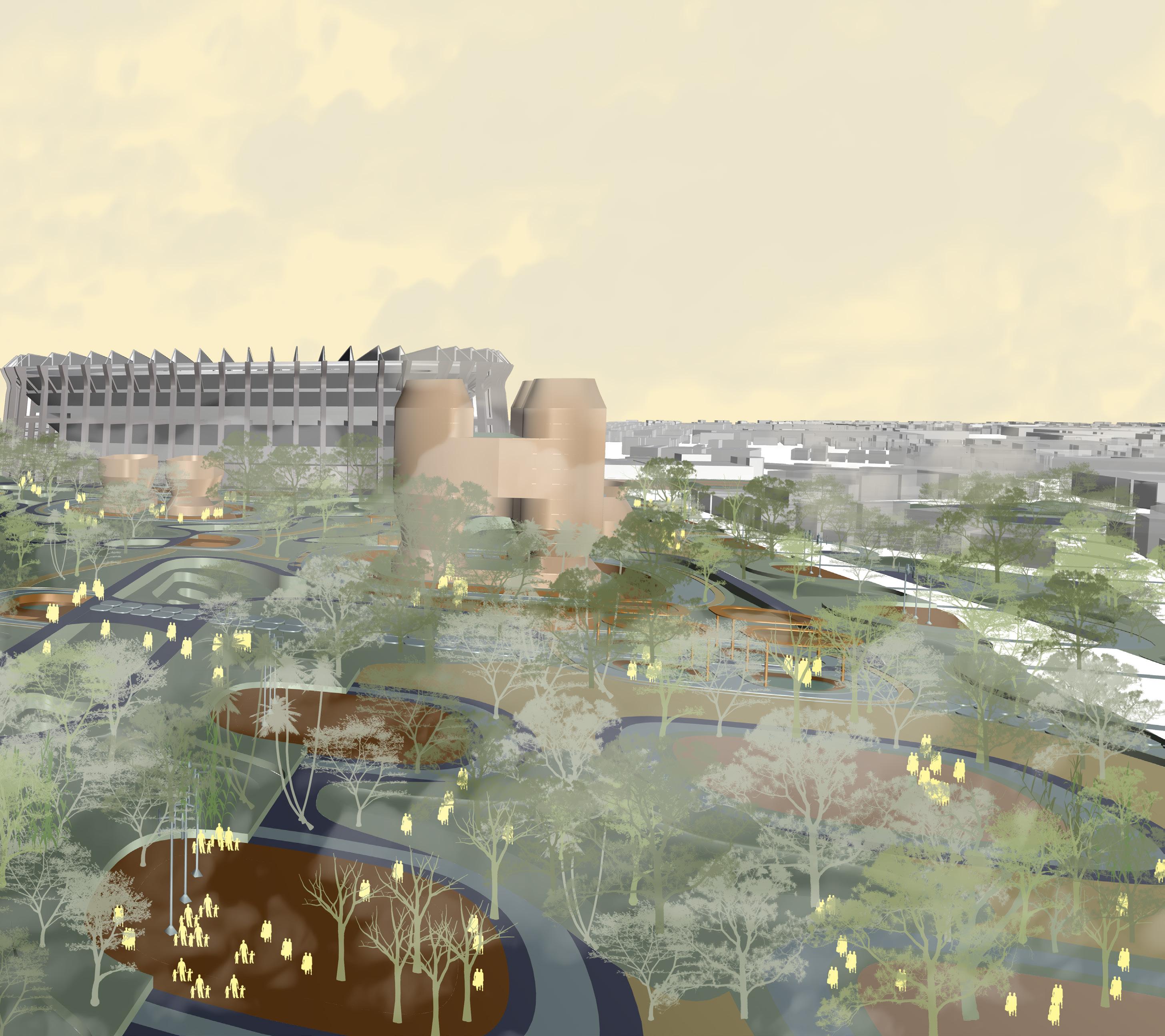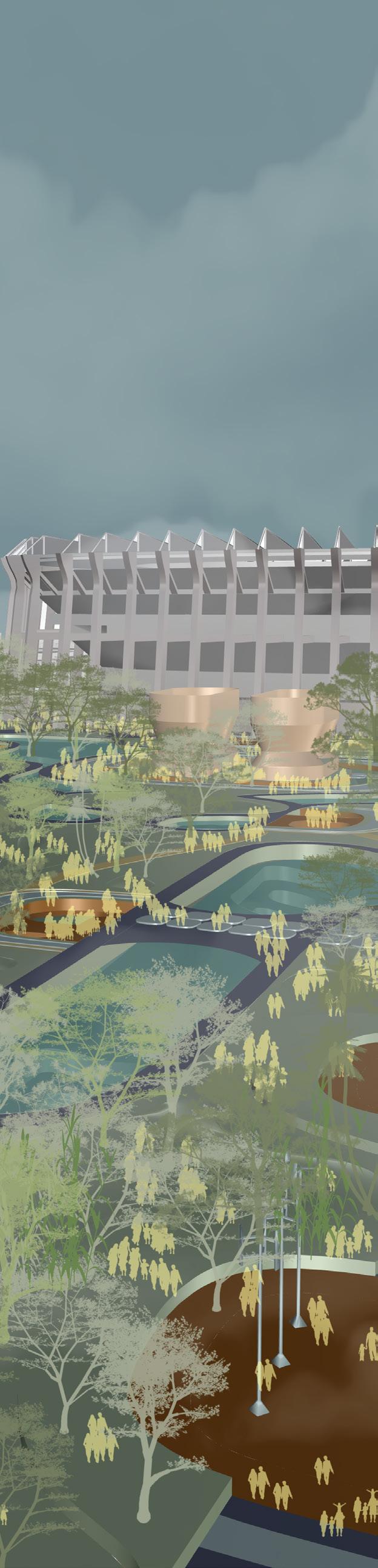 Urban Altar reimagines the stadium district as a public landscape of memory, ritual, and resilience. Anchored by Estadio Banorte, the design introduces episodic interventions, sponge parks, modular altars, and open infrastructures, that respond to both daily rhythms and natural shocks such as floods and earthquakes. Each ‘altar’ supports revenue-generating or community-oriented programs, fostering employment and a balanced urban economy.