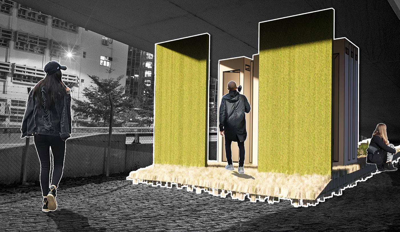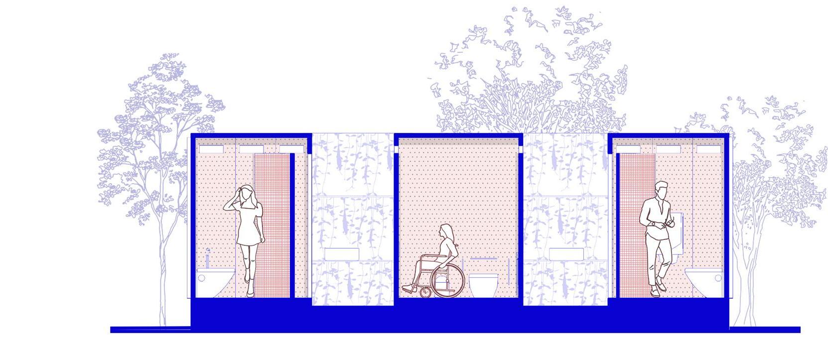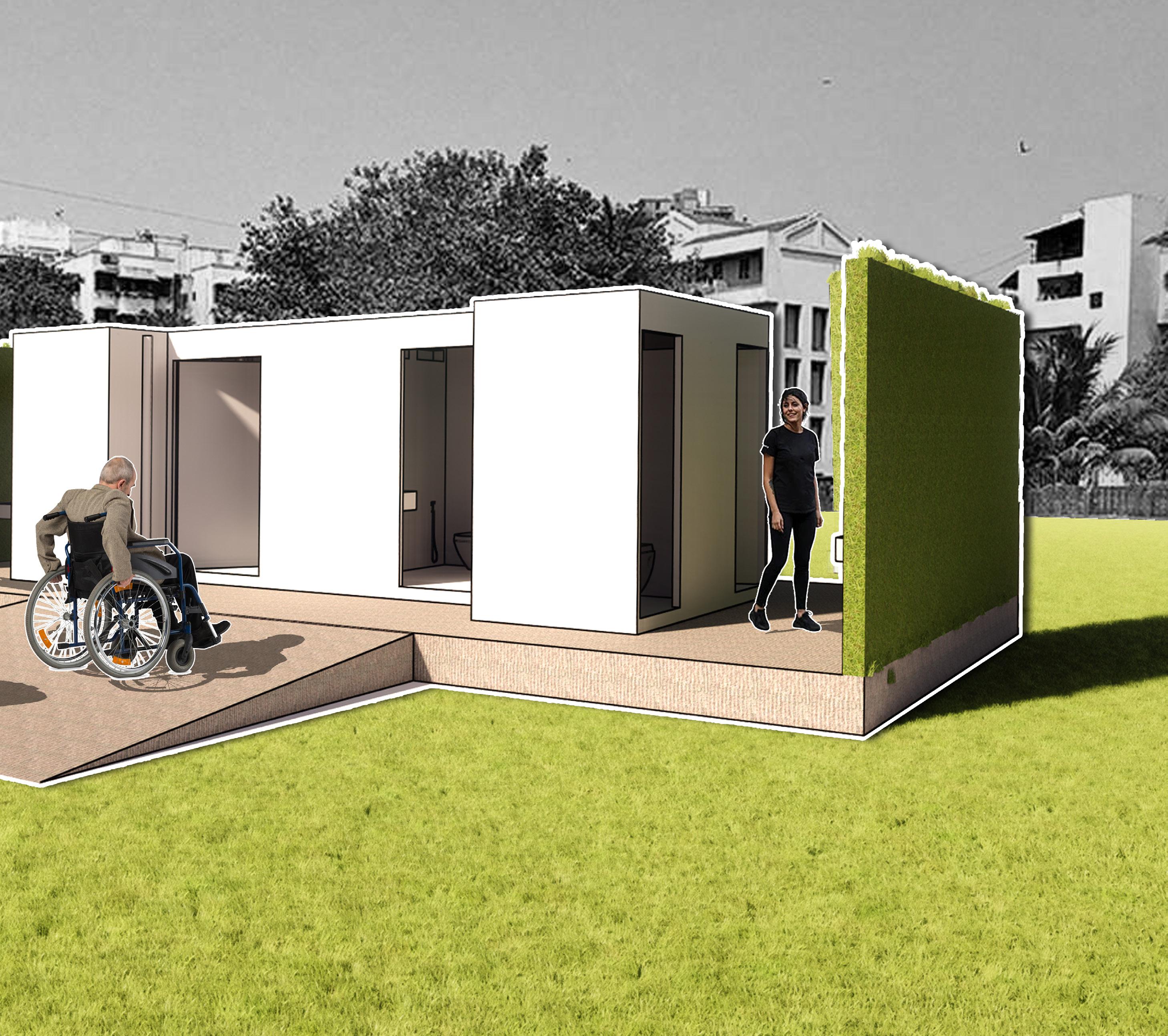 The modular system comprises male, female, and accessible units, easily assembled or disassembled to adapt to spatial constraints. By embedding sanitation within the everyday urban fabric, the project redefines toilets not as hidden utilities but as civic infrastructure that restores dignity, accessibility, and ecological value to public space.