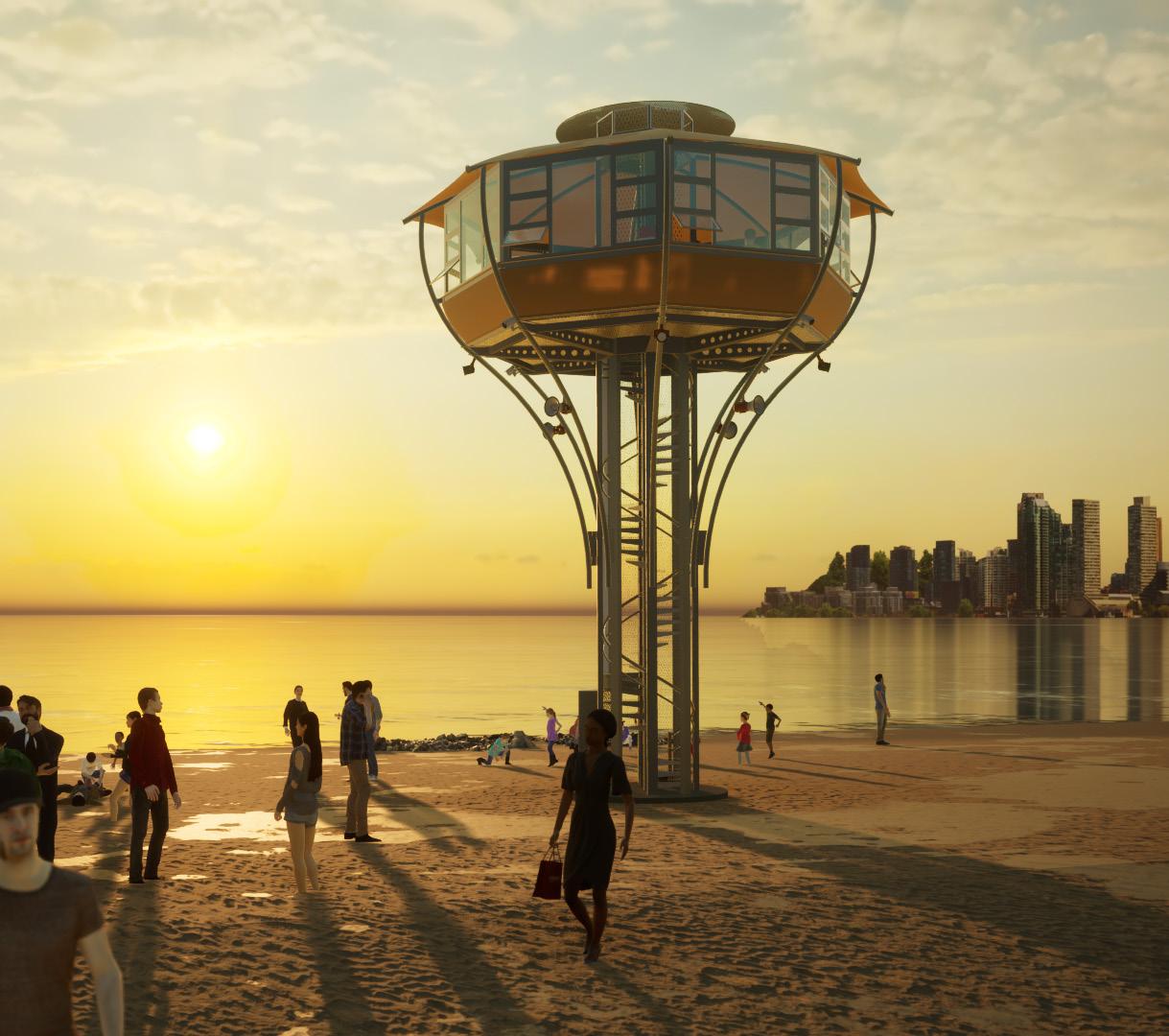 proposal introduces a series of permanent, elevated security towers. These structures enhance vigilance and public safety while preserving uninterrupted views and open access to the beach.