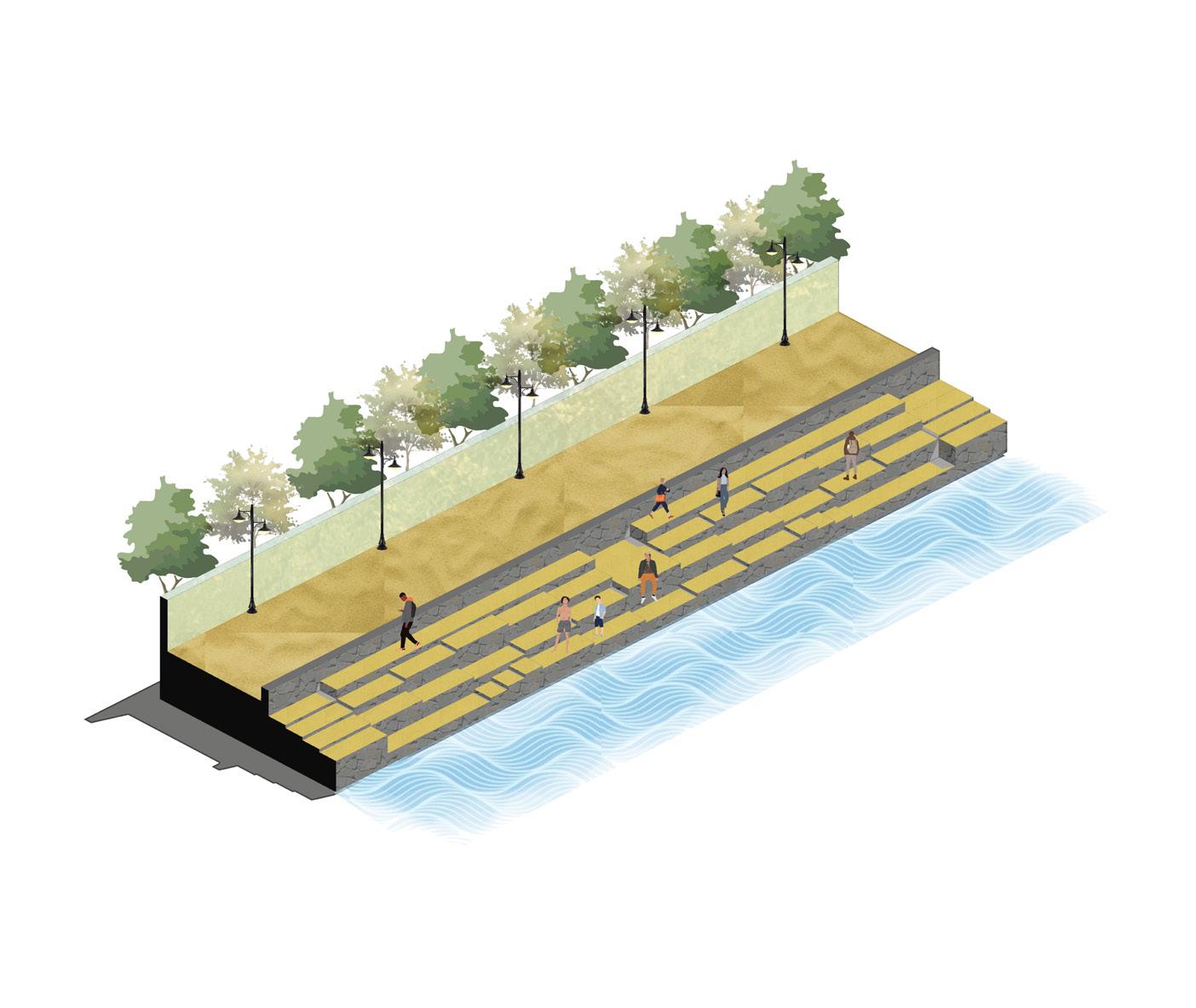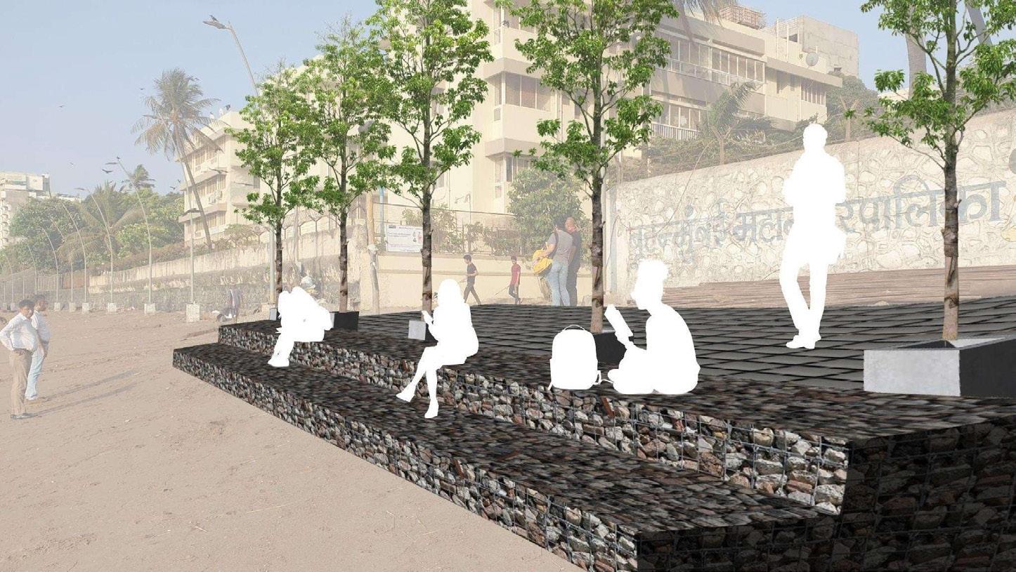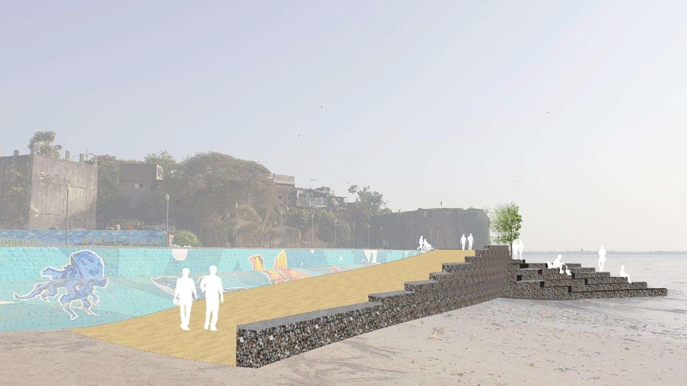DESIGNPROPOSALS: Unhindered all-weather pedestrian walkway from Mahim to Dadar Beach PROPOSEDACCESSIBLESTEPPEDGABIONRETENTION WALL AND RAMP
