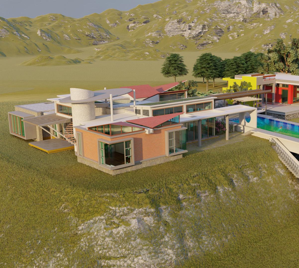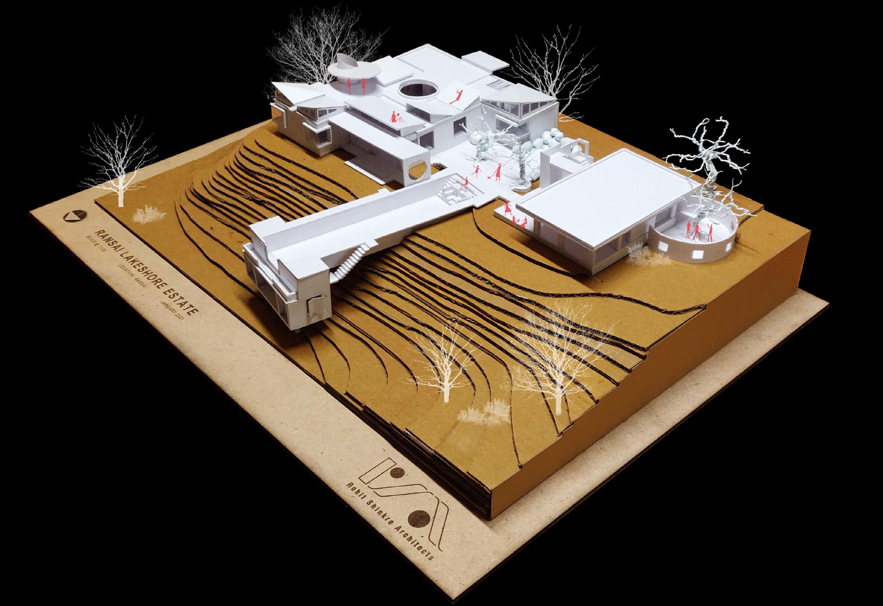 This residential estate was designed around an existing mango plantation and a steep site overlooking Ransai Lake. The project integrates multiple built volumes, terraces, and landscape systems to create a continuous relationship between architecture and terrain. The design responds to topography through split levels, connecting bridges, and outdoor courts, while incorporating passive strategies such as shaded verandahs, natural ventilation, and insulated roofs.