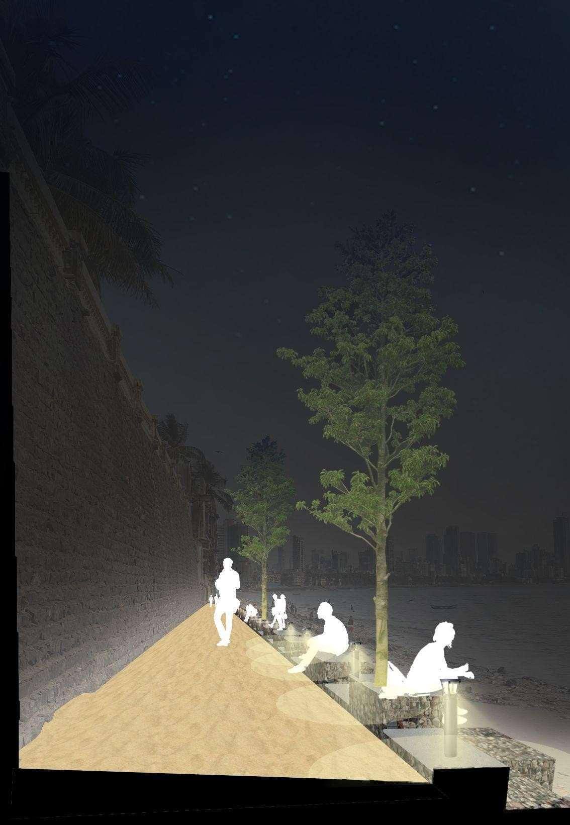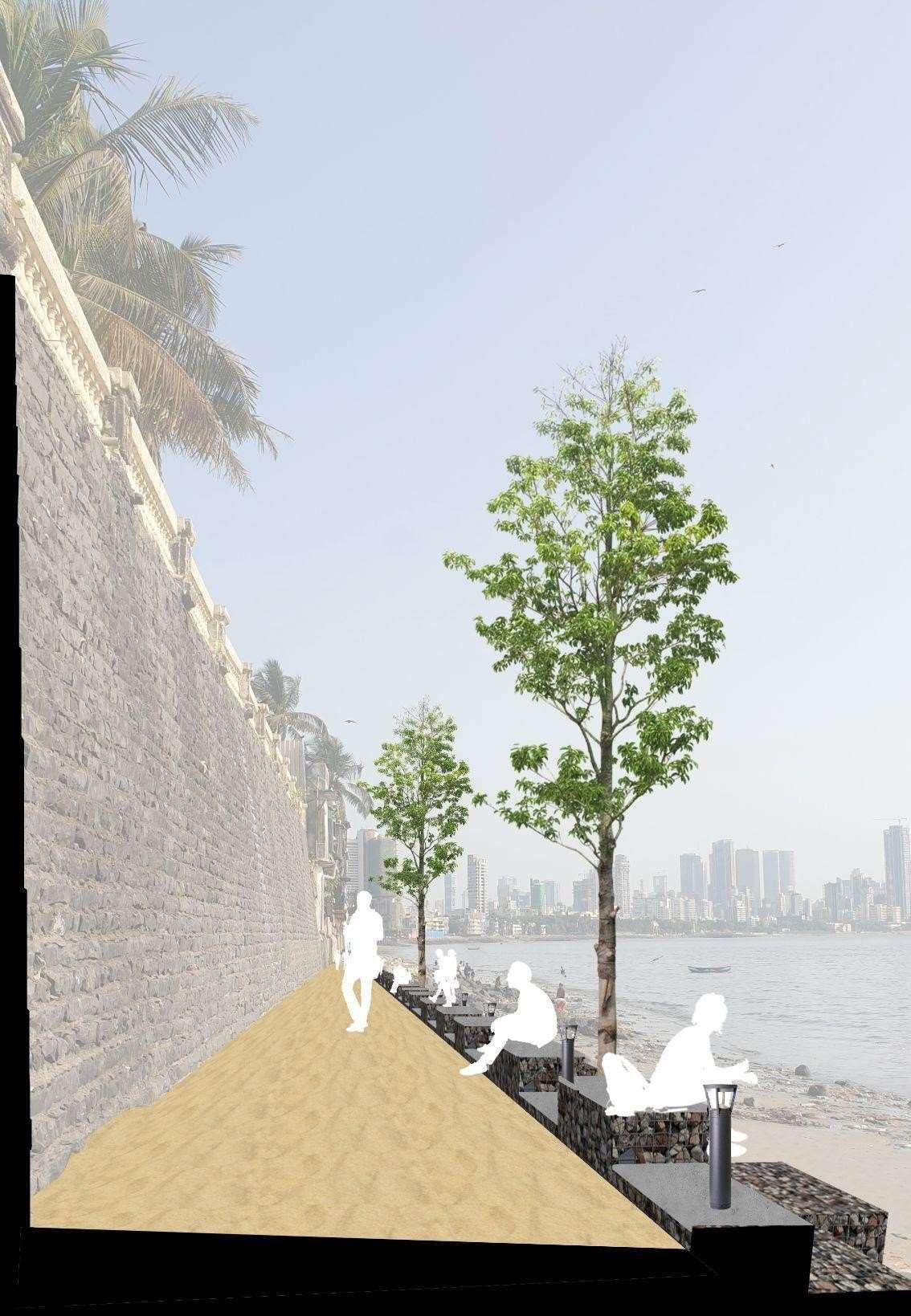 The proposed beach makeover’s main features involve beautifying the stretch around Dadar-Mahim Beach through an open deck facing the sea. Additions include benches, tourist lookouts, palm trees, landscaped flower beds, play areas for children, and public amenities such as toilets, light poles, gabion seating, and concrete pathways. The design prioritizes erosion control while enhancing accessibility and community use of the waterfront.