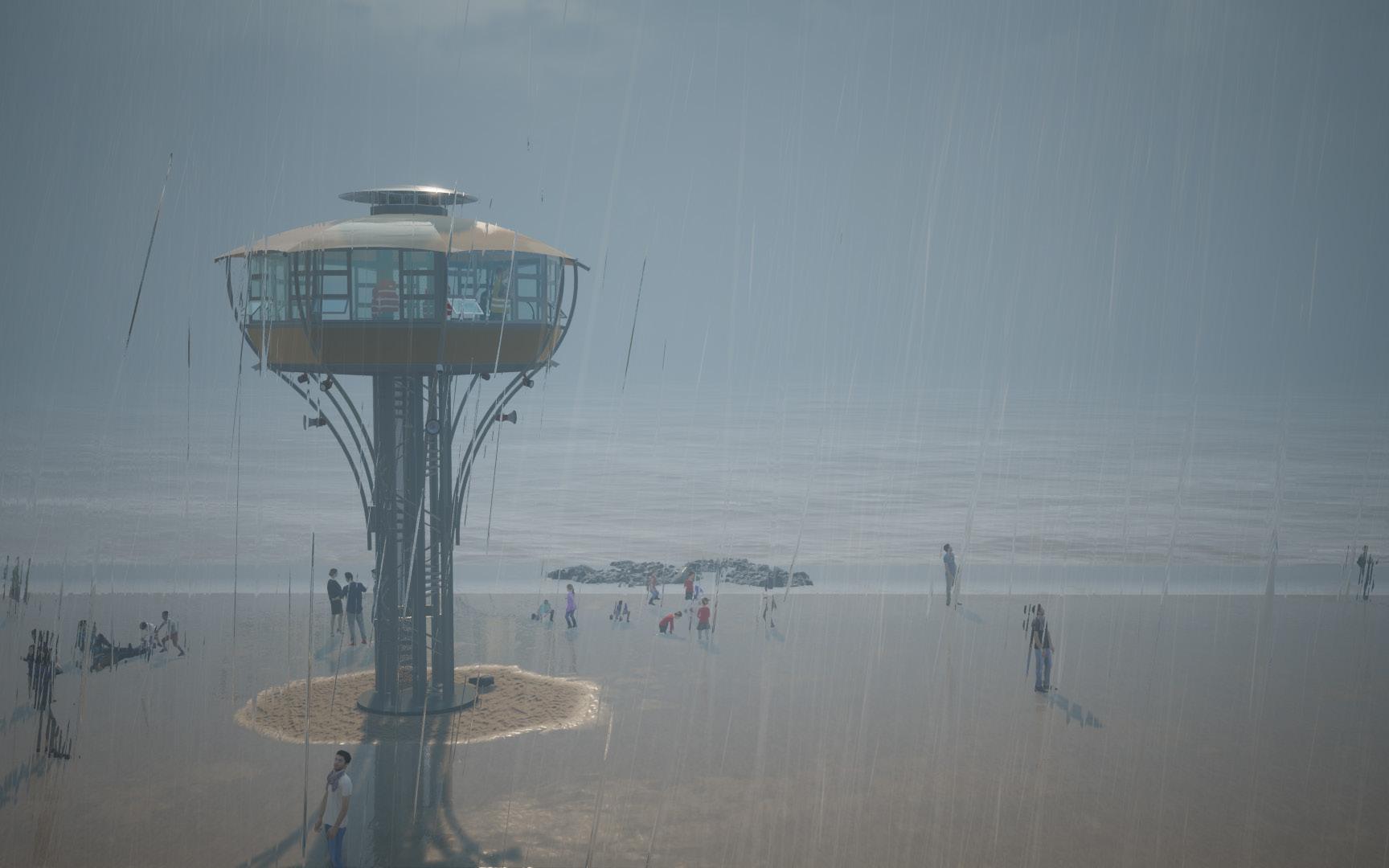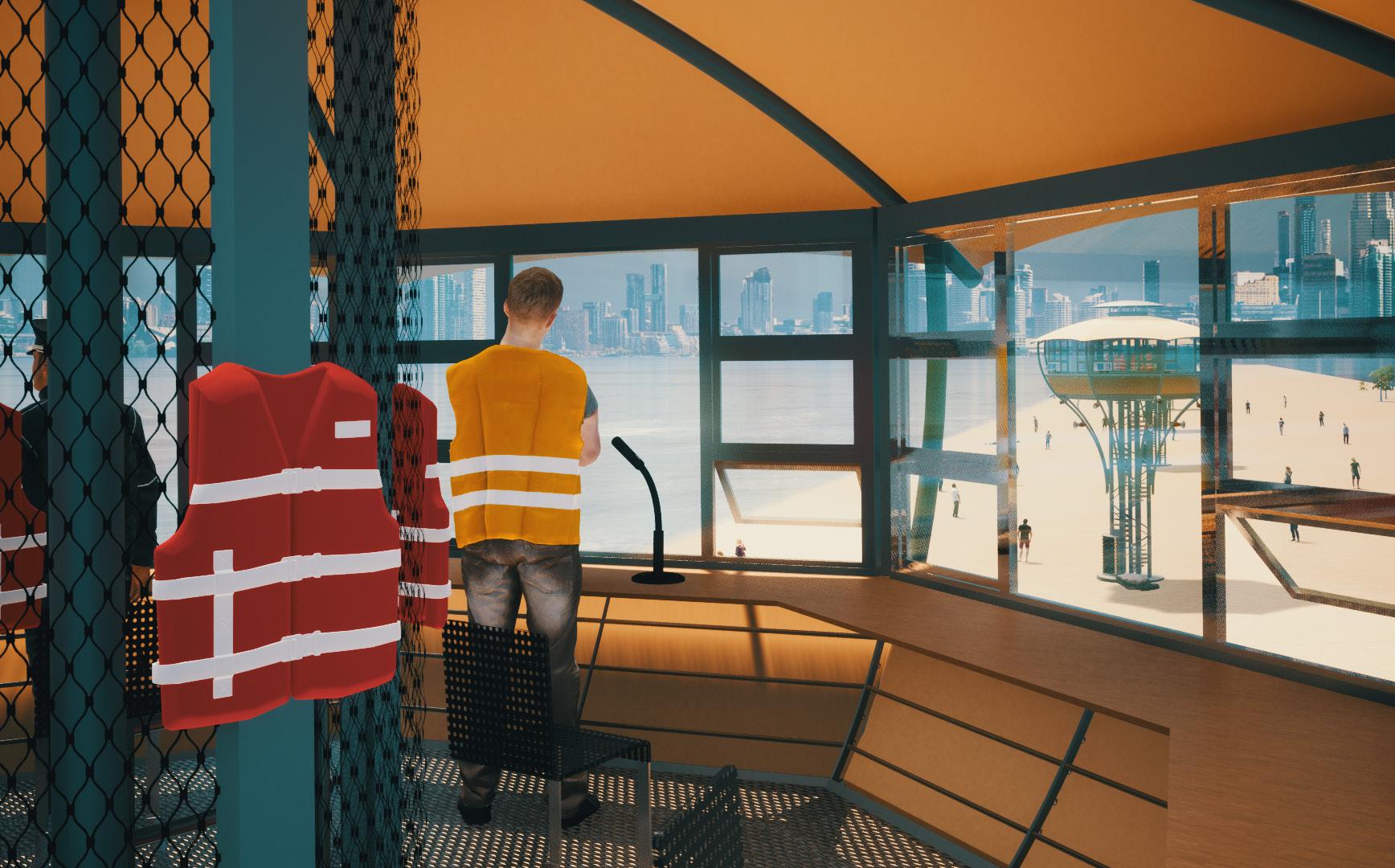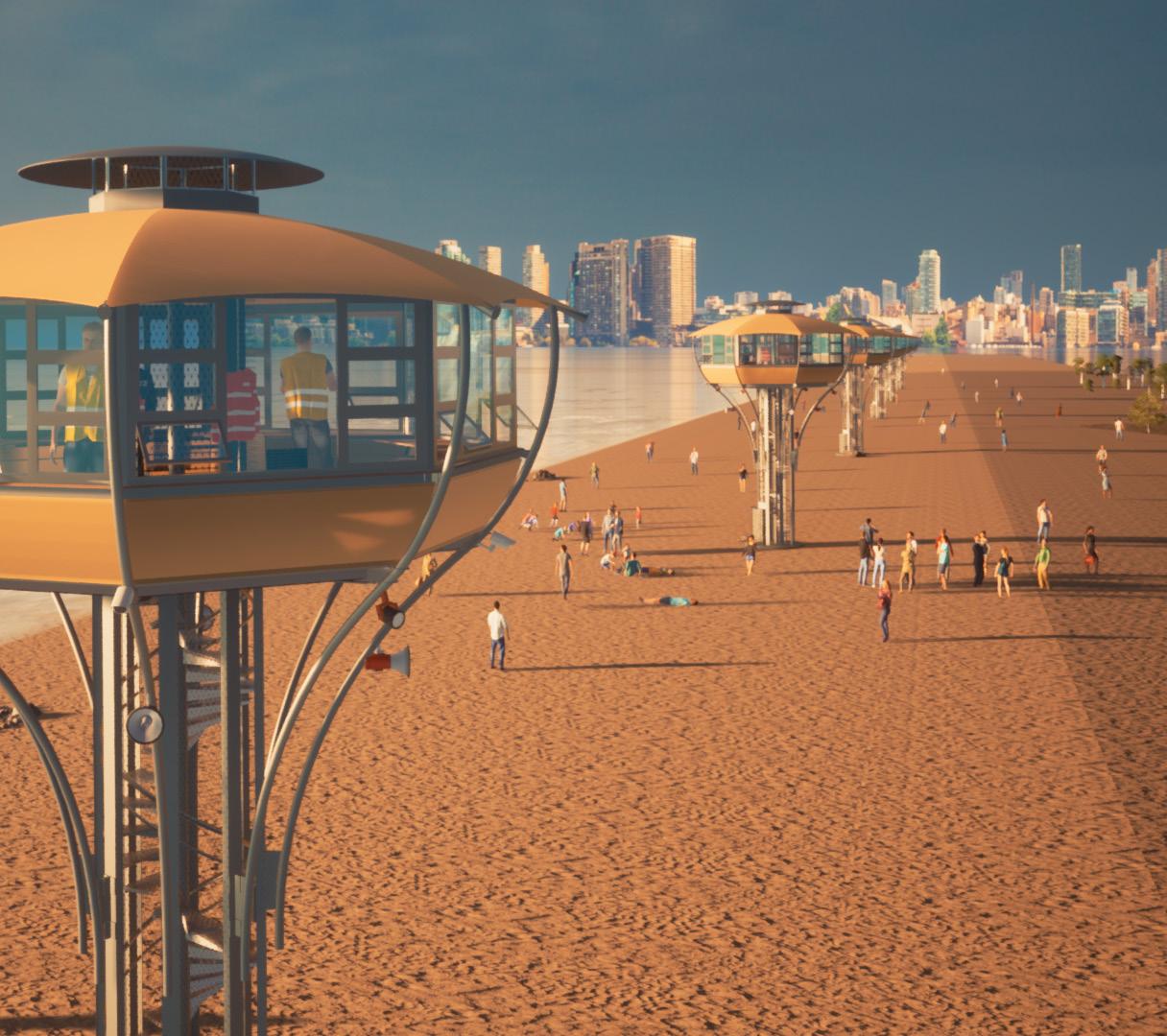 proposal introduces a series of permanent, elevated security towers. These structures enhance vigilance and public safety while preserving uninterrupted views and open access to the beach.