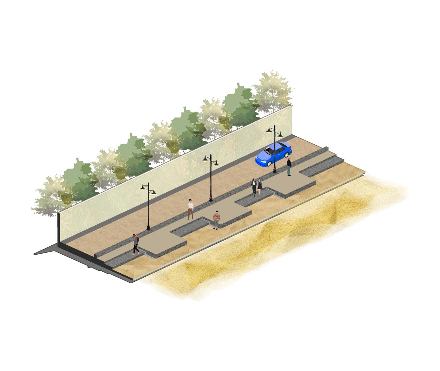 DESIGNPROPOSALS: Unhindered all-weather pedestrian walkway from Mahim to Dadar Beach PROPOSEDACCESSIBLESTEPPEDGABIONRETENTION WALL AND RAMP