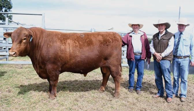Jambili Radradra sold for a National Record Price of $20,000 to Burnett Livestock Group. Pictured with Radradra is James McUtchen (Jambili Principal), John Burnett (Burnett Group) and Corey Evans (ALL).