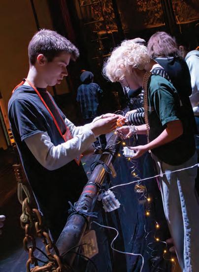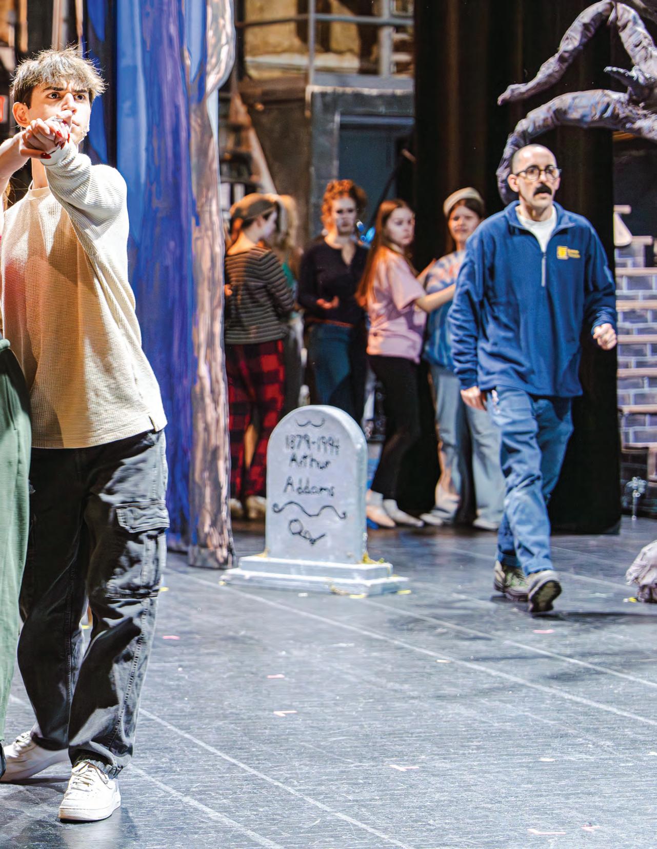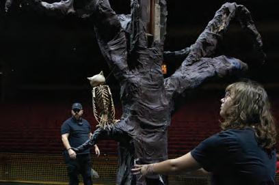 piece, actors and backstage crew members work together to assemble the crypt, a key part of the graveyard scenery. The crypt was disassembled completely for transport purposes