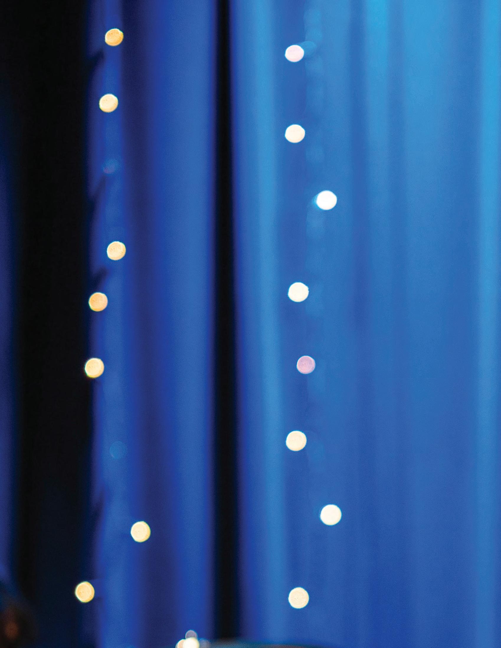 Wrapping string lights around the backdrops, junior Abel Hegeman helps to set up the Century II Performing Art & Convention Center mainstage for “The Addams Family: School Edition." Photo by Evie Chancy