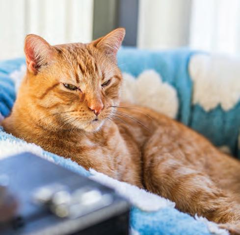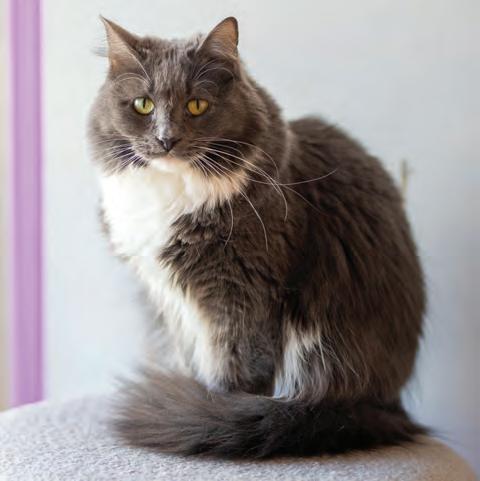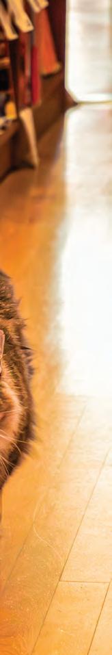 Sitting in the sunlight, Syd the house cat of Espurresso perches on a cat tree. Syd was adopted in October 2023 by the store and is said to be social, helping under-socialized kittens acclimate. Photo by Nate Willems
