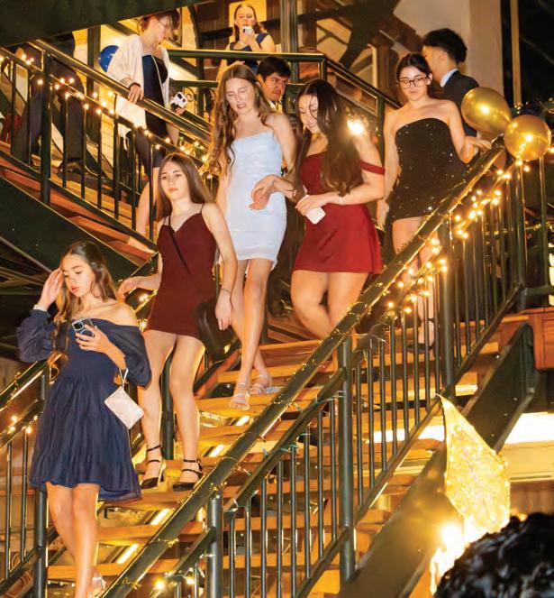 Walking down the stairs, students enter the “Starry Night” formal. Photo by Cecilia Bennett
