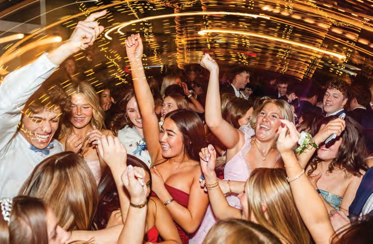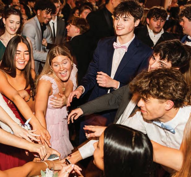 Putting their hands in, students dance to Neil Diamond’s “Sweet Caroline” at formal. The song is traditionally the final song played at school dances. Photo by Nathan Kramer