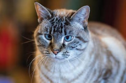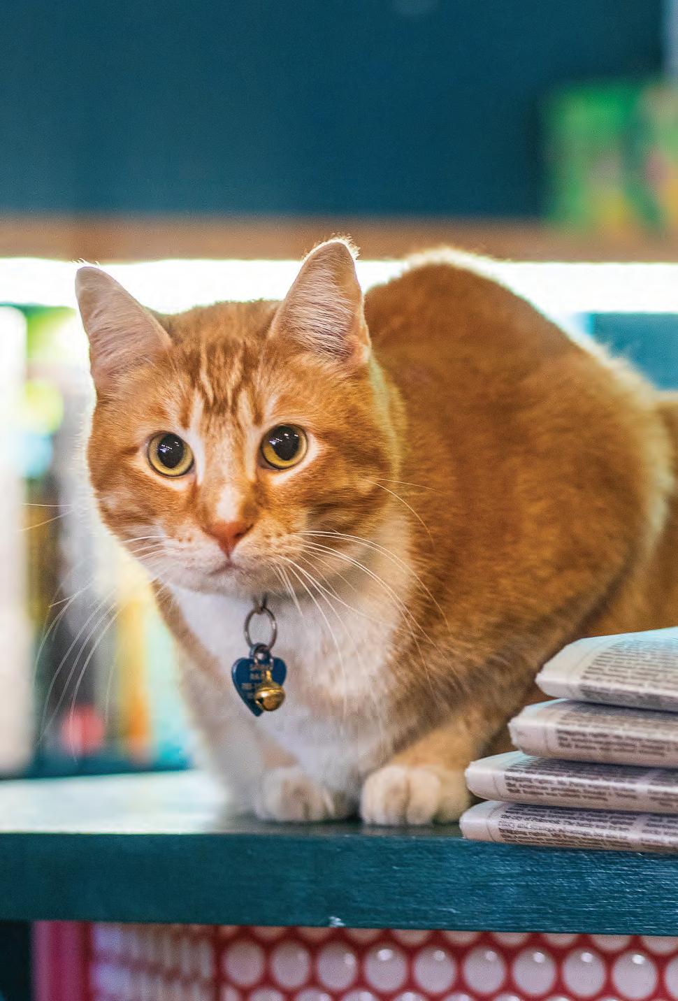 Perched on the counter, Sammy stares down customers shopping for books. Sammy is one of the resident cats of The Raven Bookstore, which has been open since 1987. Photo by Nate Willems