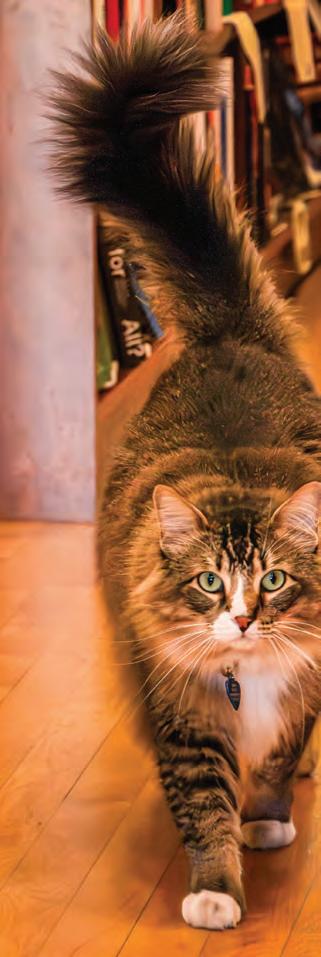 Walking around, Dean the cat from The Ravens Bookstore greets bookloving customers on Jan 16