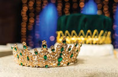 Awaiting the crowning ceremony, the crowns and tiaras rest on the podium for the