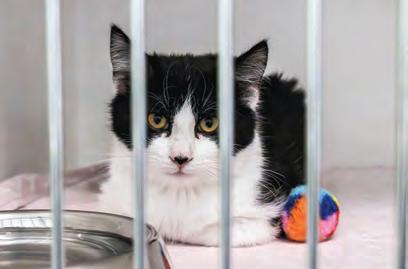 Laying in his kennel, Color Pop is one of the cats available for adoption at the Lawrence Humane Society.