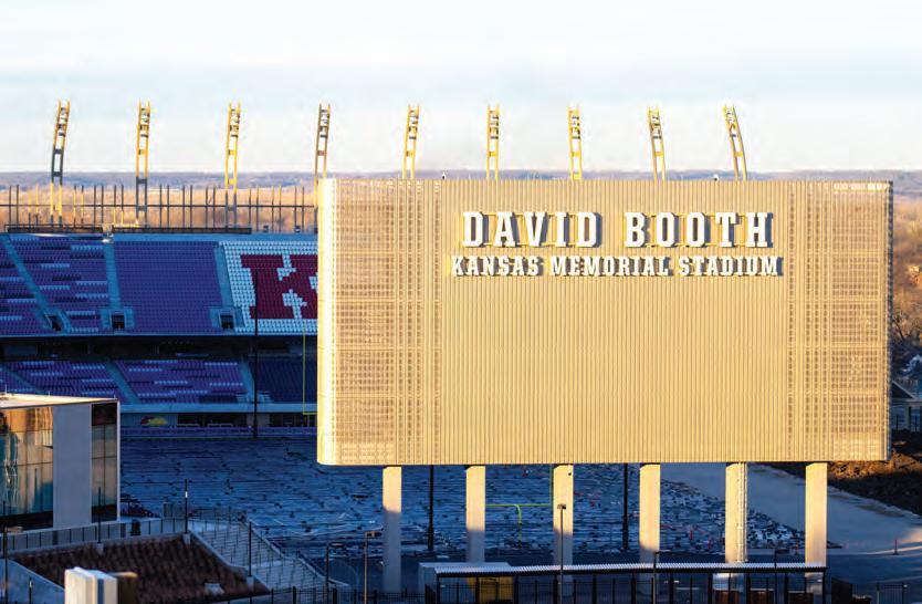 Located in Marvin’s Grove, the David Booth Kansas Memorial Stadium is home of the KU Jayhawk football team. Photo by Addison Powers