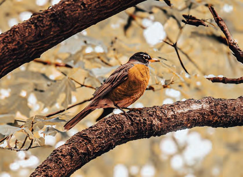 Looking to its horizon, an American Robin perches quietly in Marvin Grove on the University of Kansas campus.
