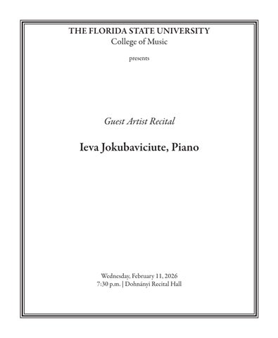 Florida State University provides accommodations for persons with disabilities. Please notify the College of Music at (850) 644-3424 at least five working days prior to a musical event to request accommodation for disability or alternative program format.