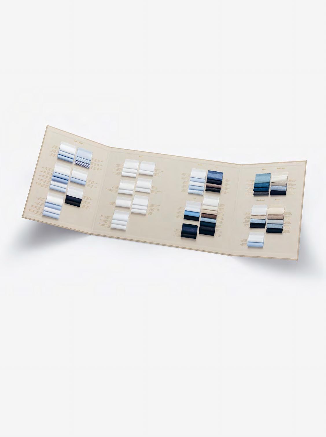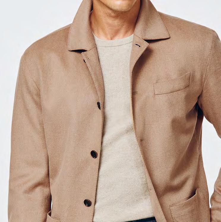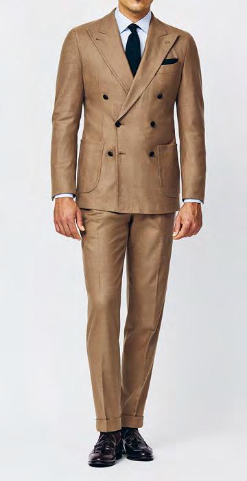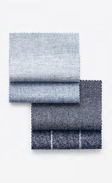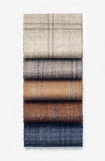 The new FW25 suit lineup includes an equally sophisticated range of fabrics from Italian maestros (p. 59), along with the new 365 seasonal camel twill quality for outerwear (p. 81), and elegant jacket fabrics including Pecora Nera®, Jersely and Silk Air (p. 57). For shirts, you’ll find options that balance performance with comfort – think modal
