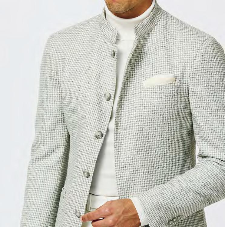 We’re introducing a Nehru closure for lightweight jackets, a new option that strikes a balance between smart and casual, seamlessly blending Eastern charm with Western practicality for a refined yet versatile look.