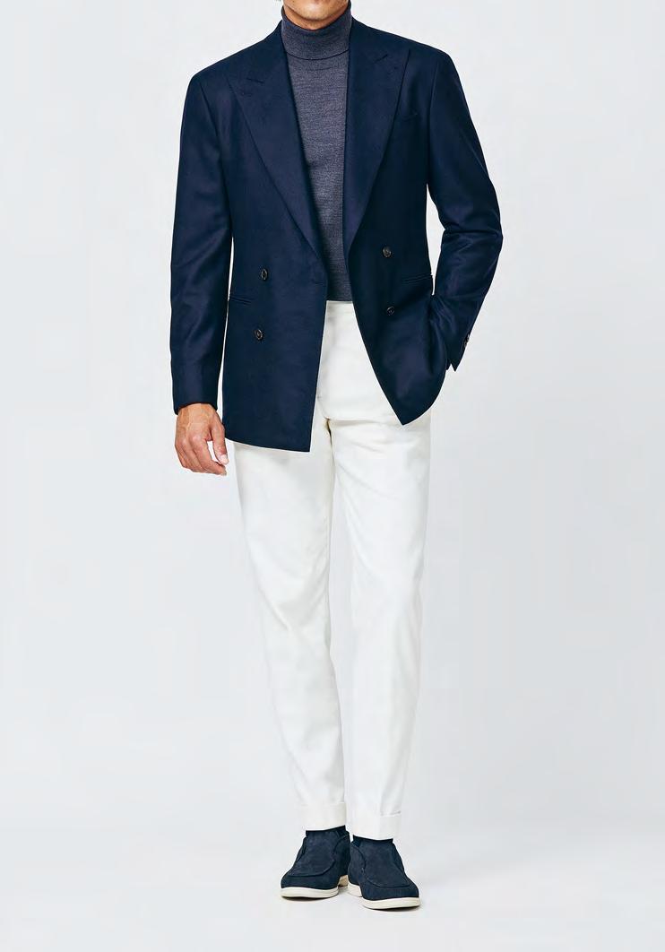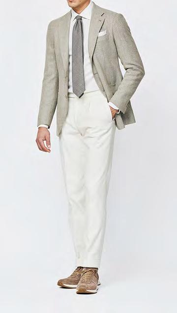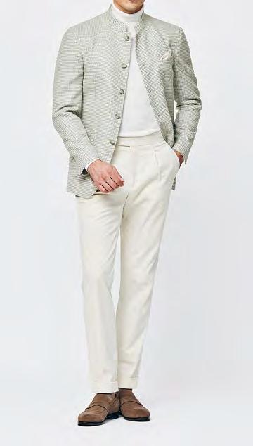 This collection of 42 seasonal qualities, featuring many fabrics made in Italy by Loro Piana, embodies the perfect fusion of performance, comfort and elegance, for a versatile, stylish wardrobe.